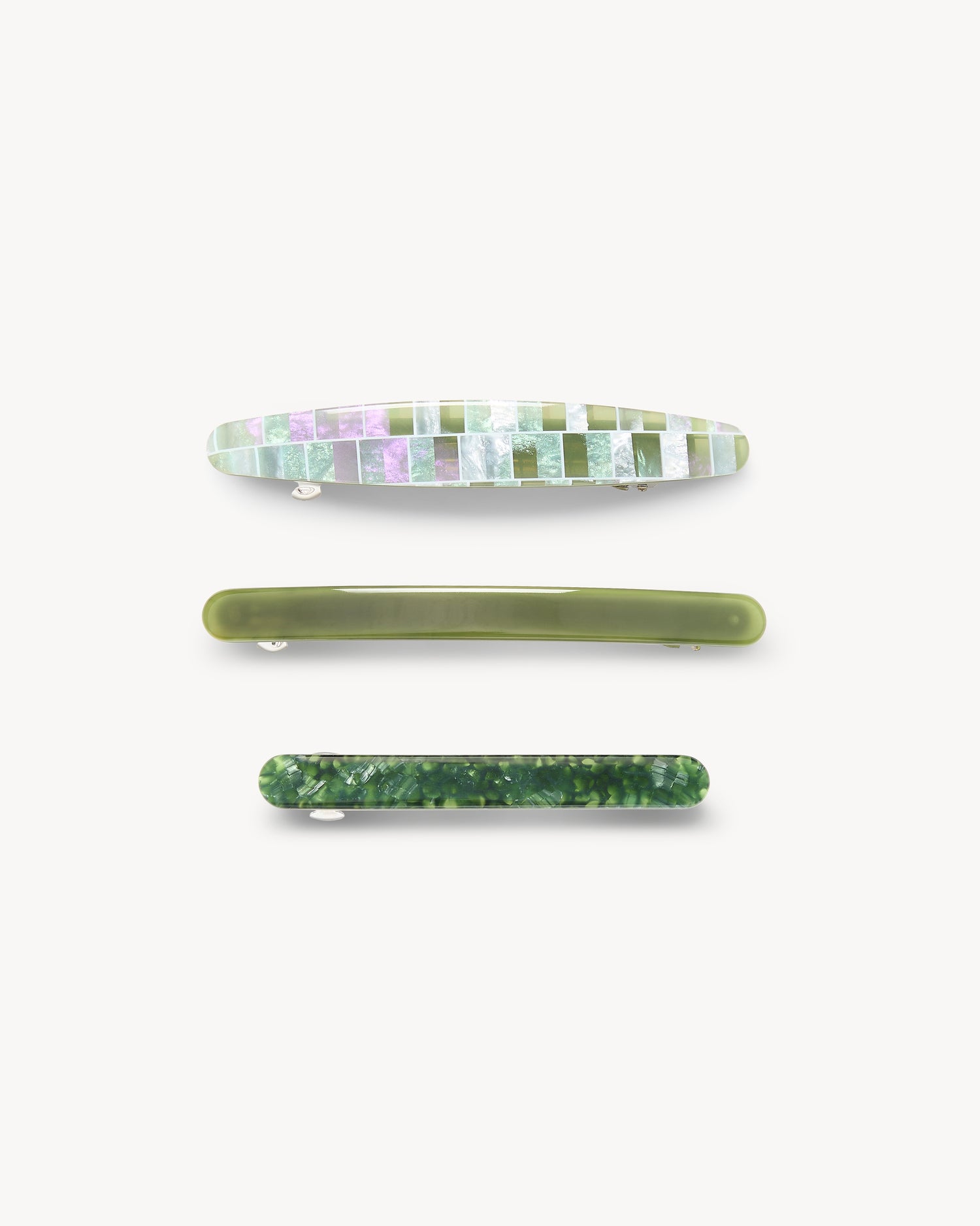 Perfectly handcrafted hair clips and claws from eco-friendly bio-acetate, recycled pearls, and...