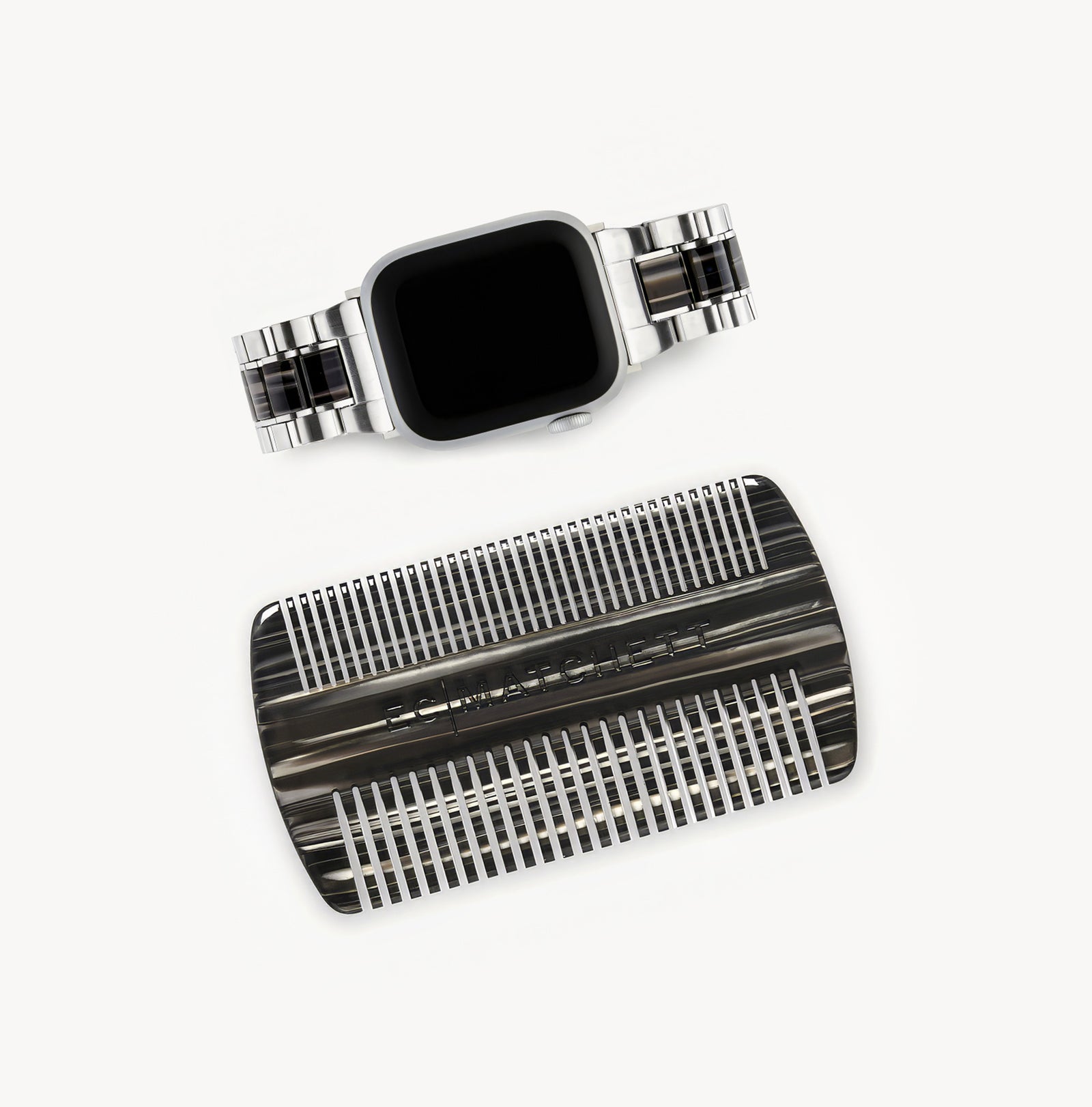 Polished, practical, and quietly luxurious. Explore the Jumbo Heirloom Claw, Apple and Samsung Watch Bands, and reading glasses with sculptural charm. Select gold and silver hoops round out this mix of refined essentials each made to be loved season after season.