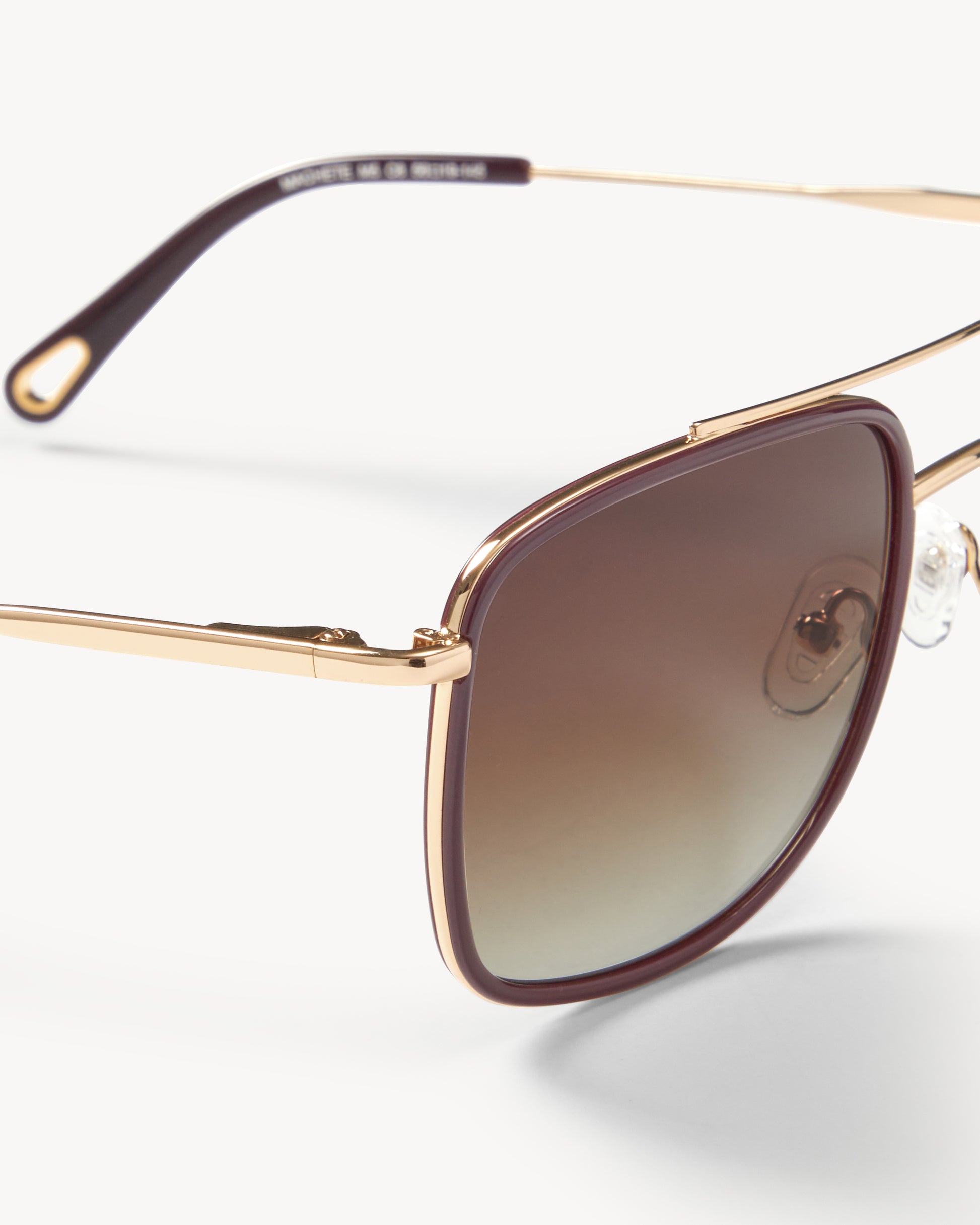• Aviator sunglasses handcrafted from recyclable Italian acetate and gold metal details