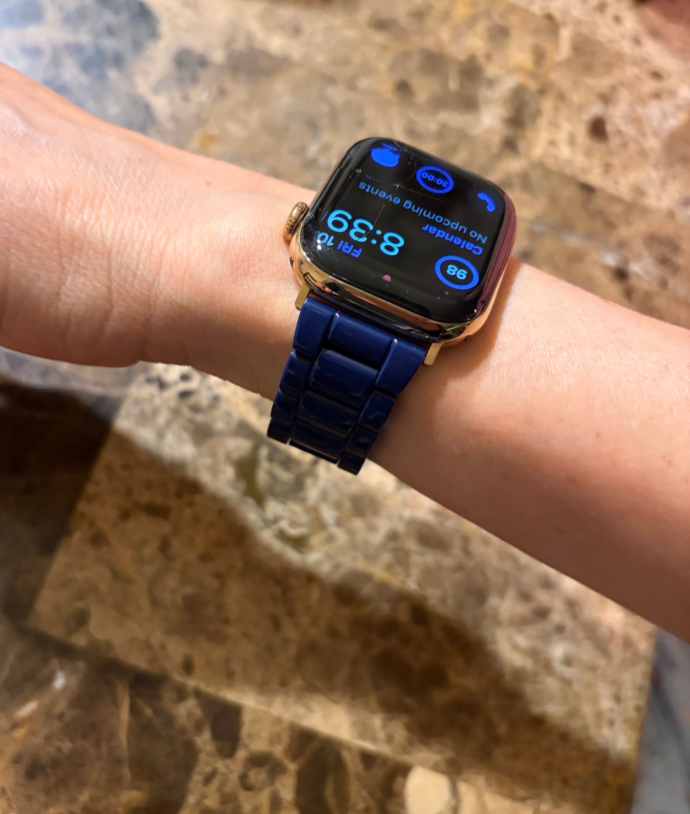 This is a gorgeous blue-aqua Apple Watch Band. I prefer a slightly more narrow band, because I have small wrists, but I did not deduct any stars. The links are easy to remove, with the provided tool and instructions.