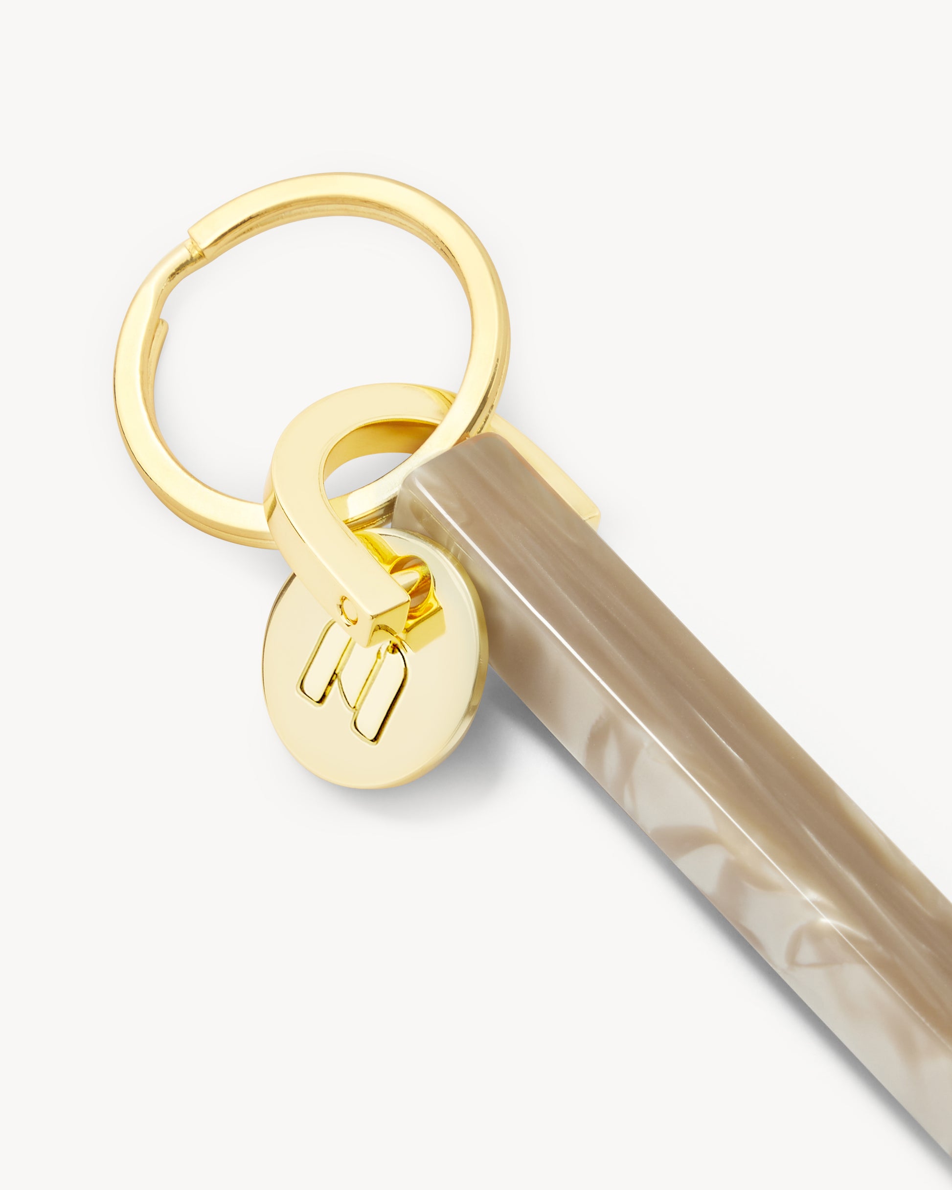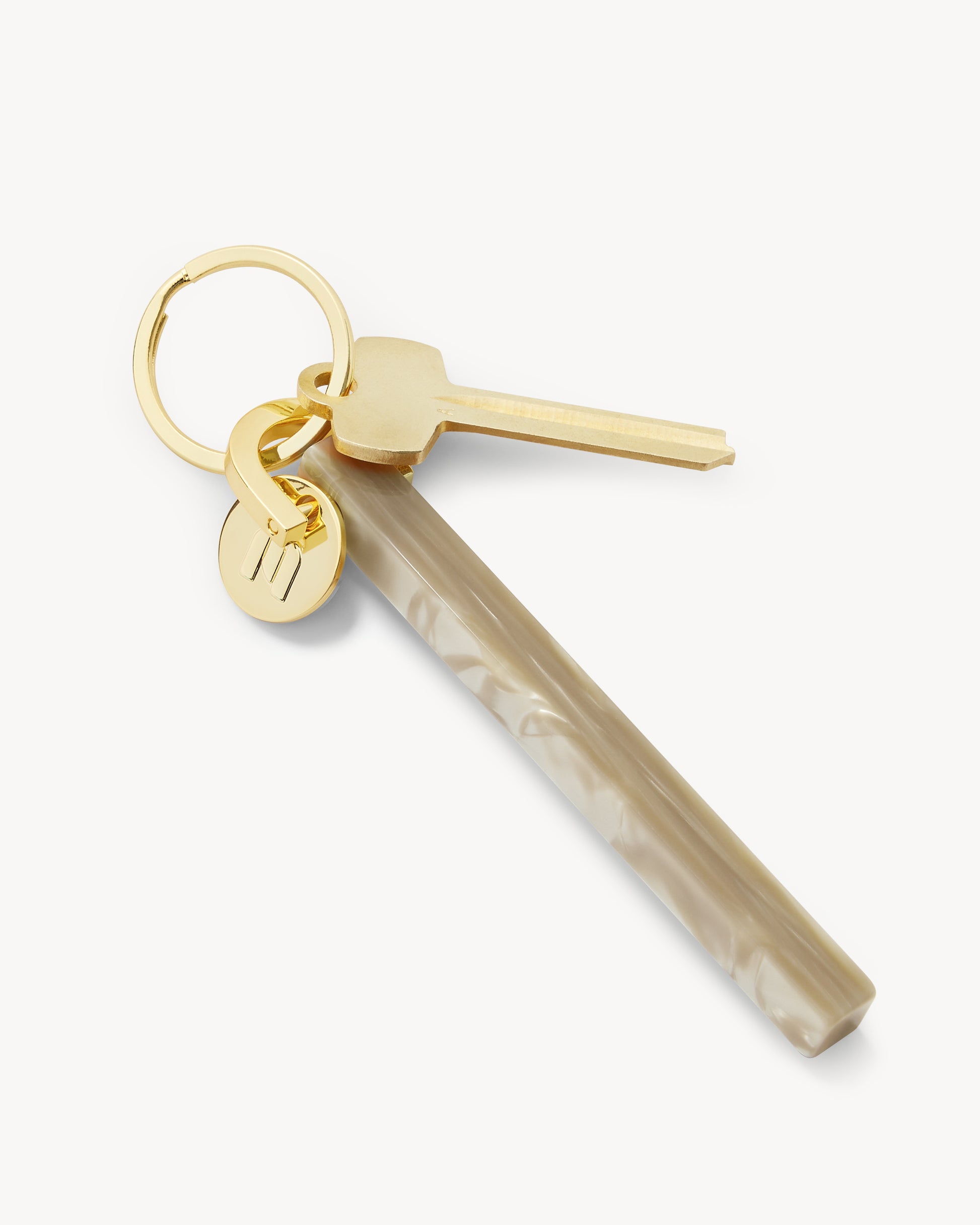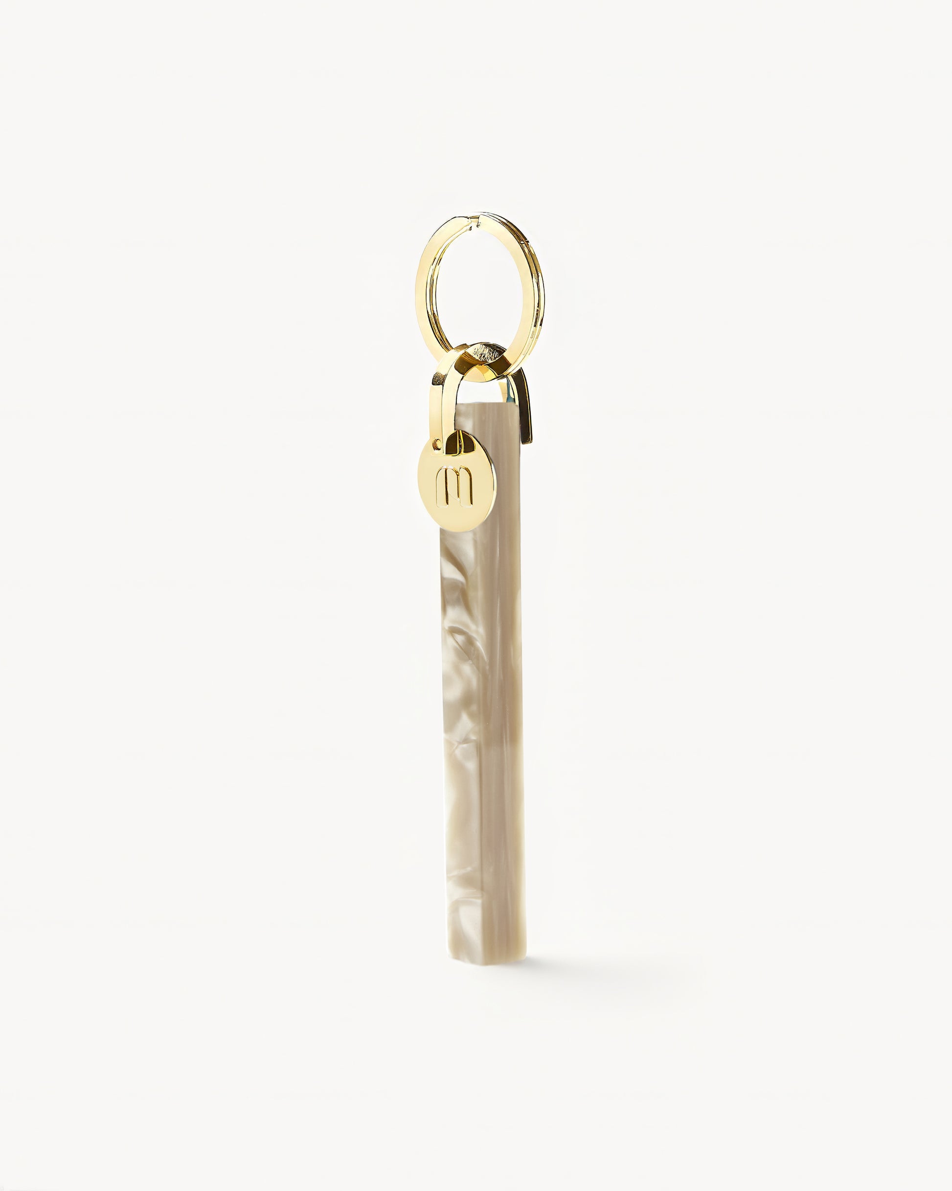 A classic bar keychain, handmade from fine Italian acetate with gold hardware.