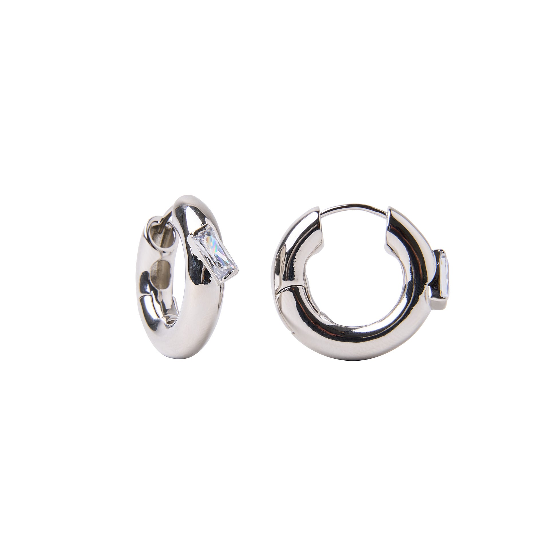 Chunky, everyday hoop earrings with a hinge closure and gemstone accent. Handcrafted from lightweight, recycled brass with rhodium plating.