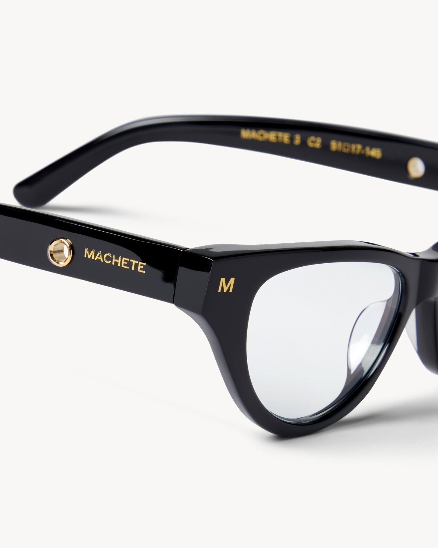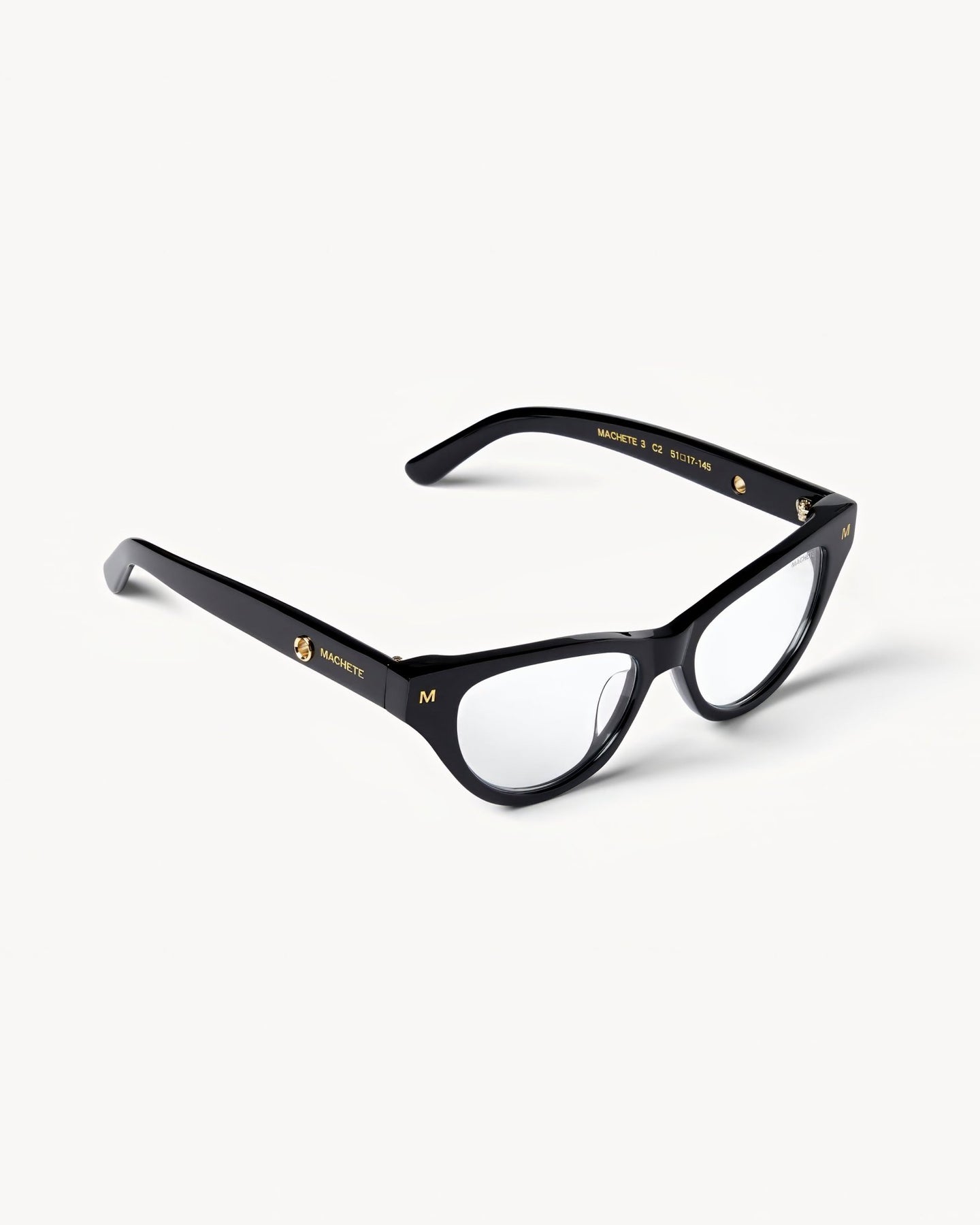 The iconic cat eye silhouette, reimagined in our Italian bio-acetate and fitted with blue light filtering lenses and gold hardware.