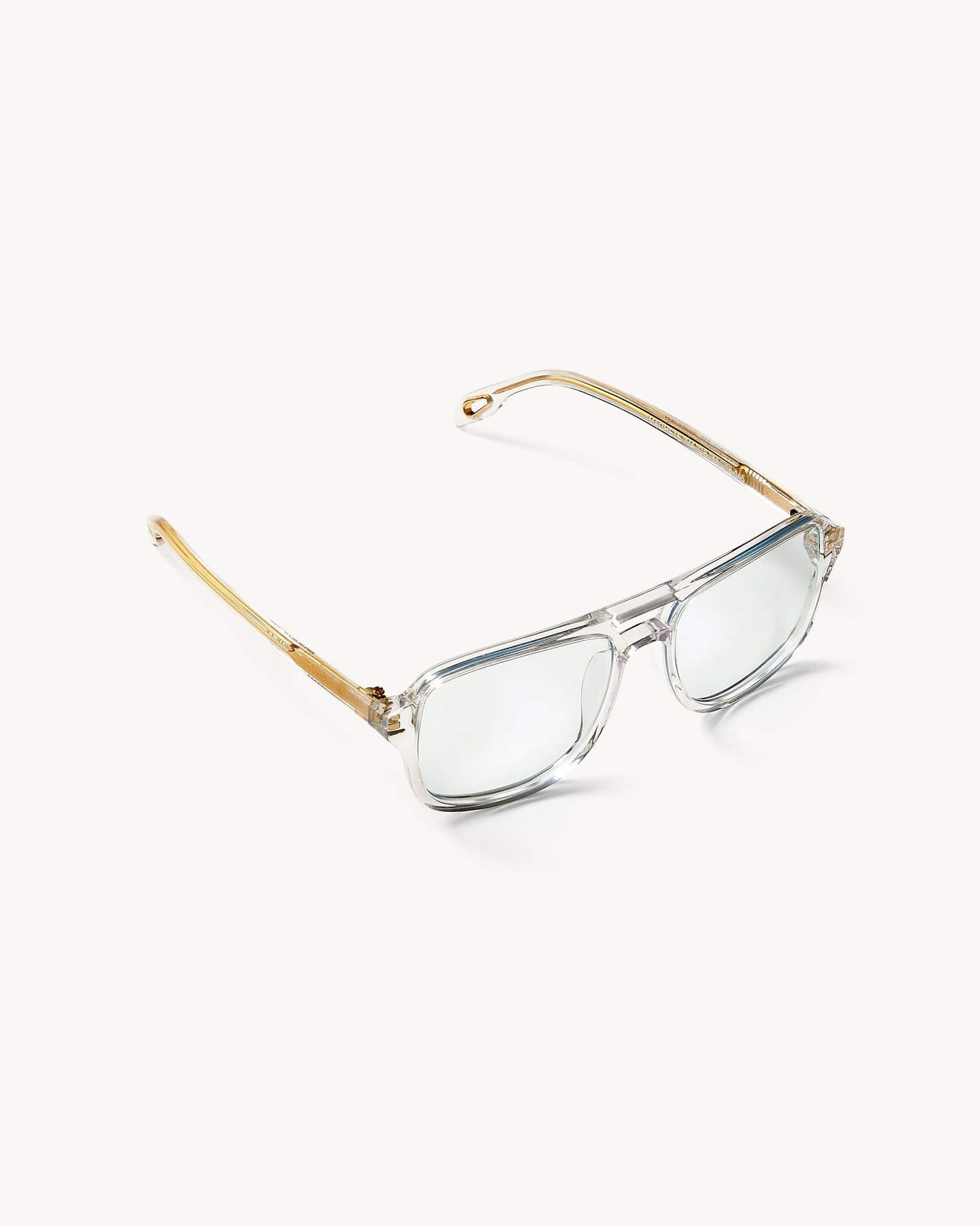 A new take on aviator frames in a bold, oversized shape, handmade from Italian acetate. Fitted with blue light filtering lenses for the highest level of protection.
