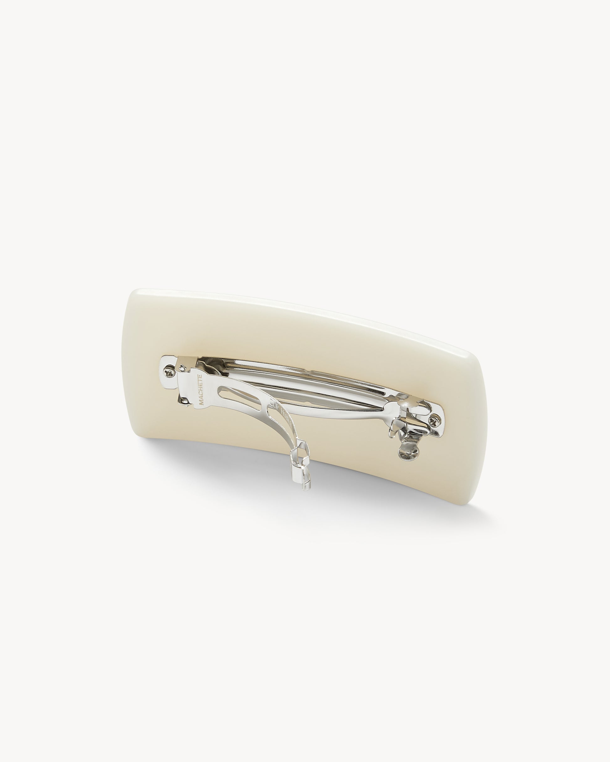 Handcrafted Italian acetate barrette with a reinforced spring clasp. Securely holds medium-to-large volumes of hair of all types and textures.