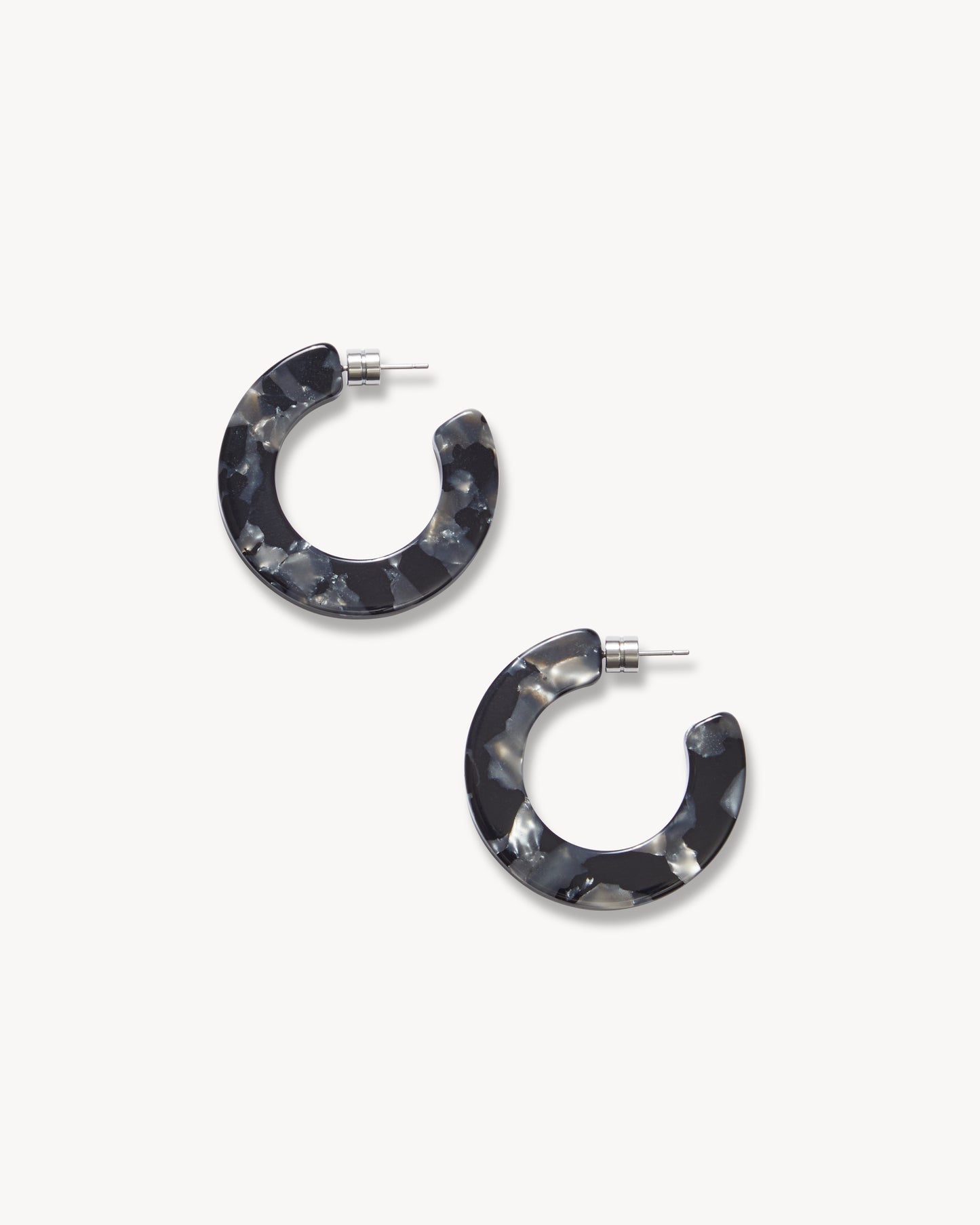 Our signature open hoop earrings, handcrafted from lightweight Italian acetate with barrel backings.