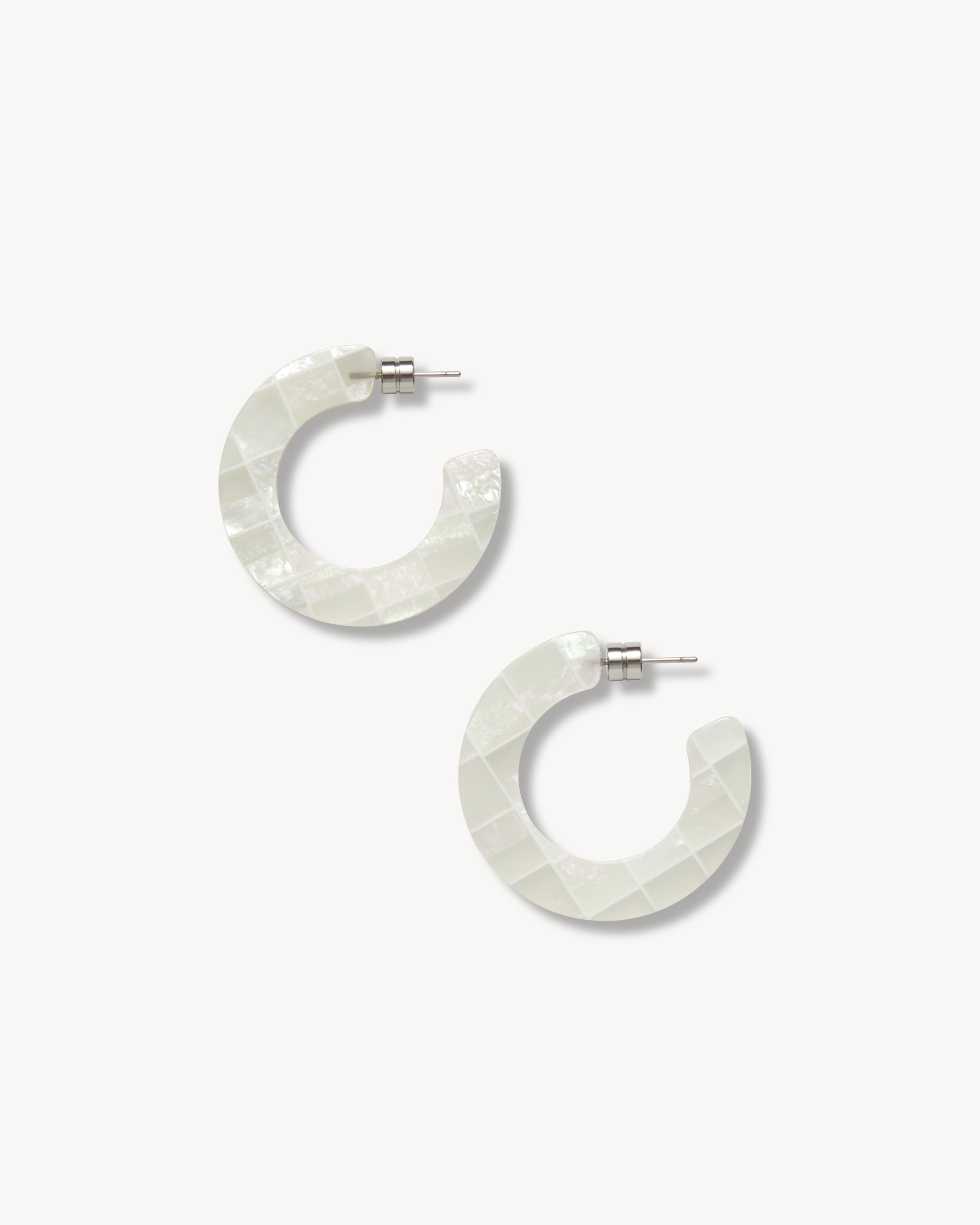Our signature open hoop earrings, handcrafted from lightweight Italian acetate with barrel backings.