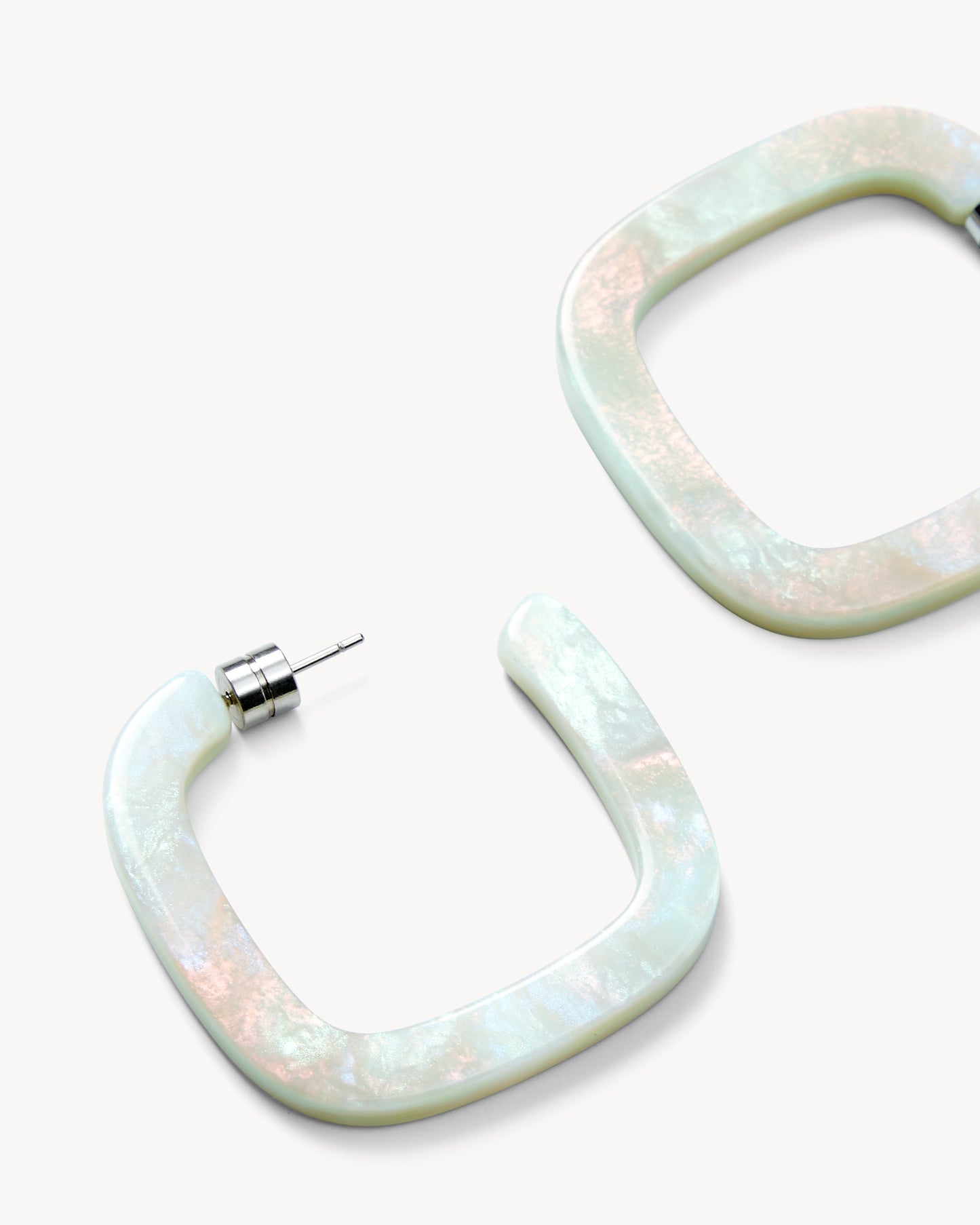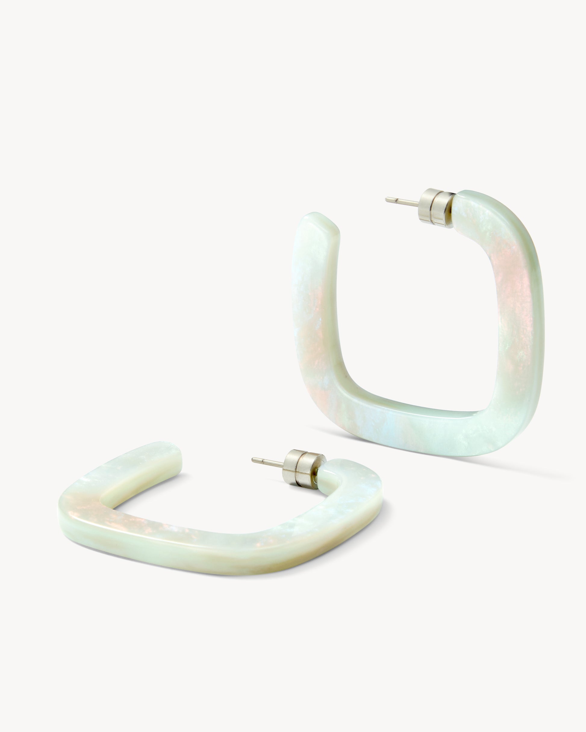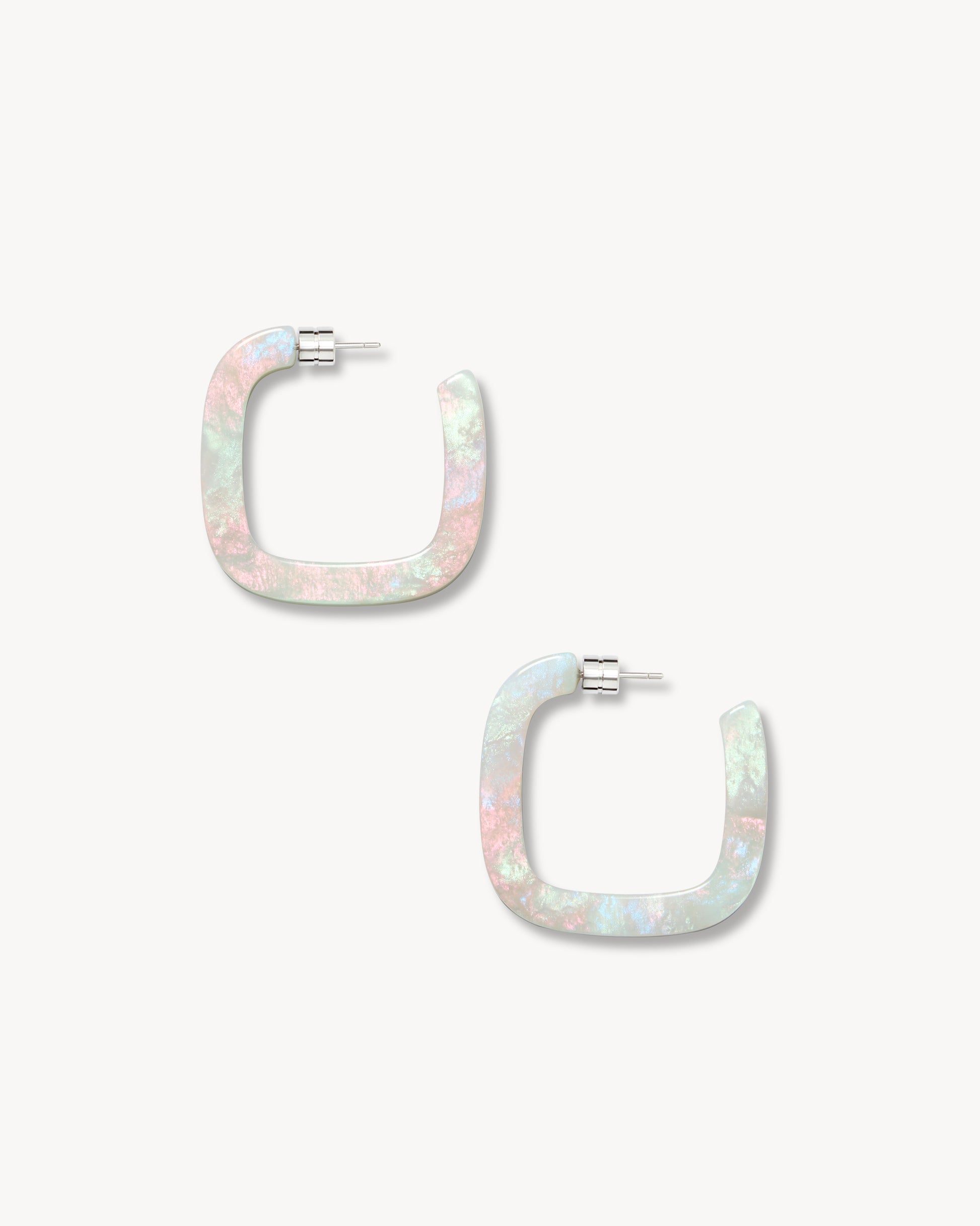 1.5” squared hoop earrings, handcrafted from our lightweight Italian acetate with engraved barrel backings.