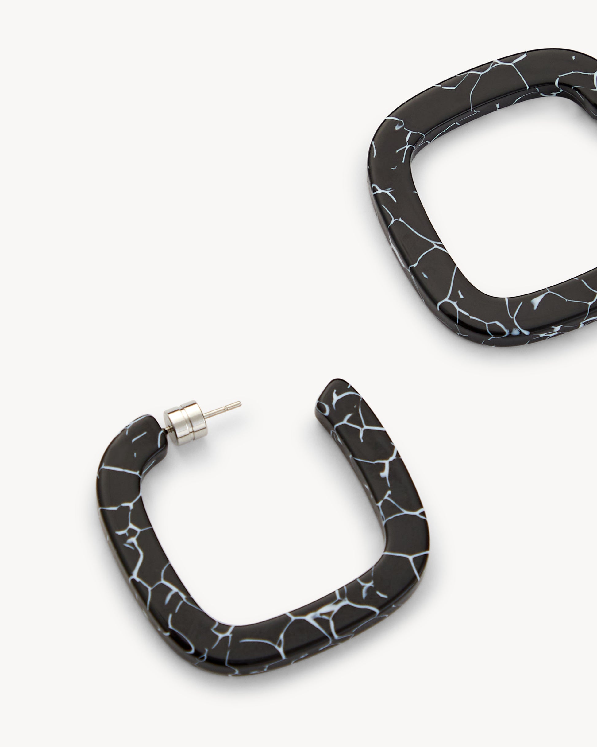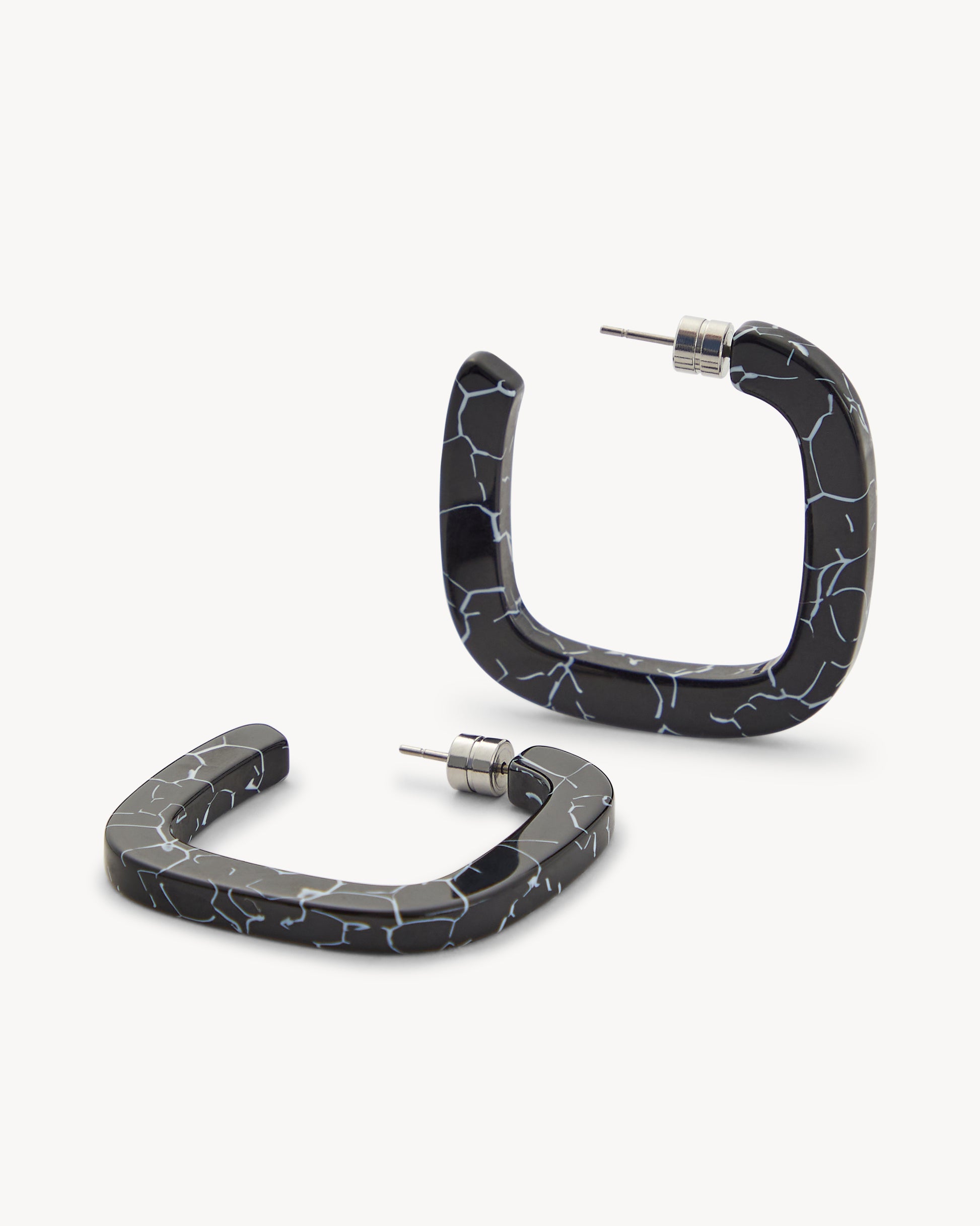 1.5” squared hoop earrings, handcrafted from our lightweight Italian acetate with engraved barrel backings.