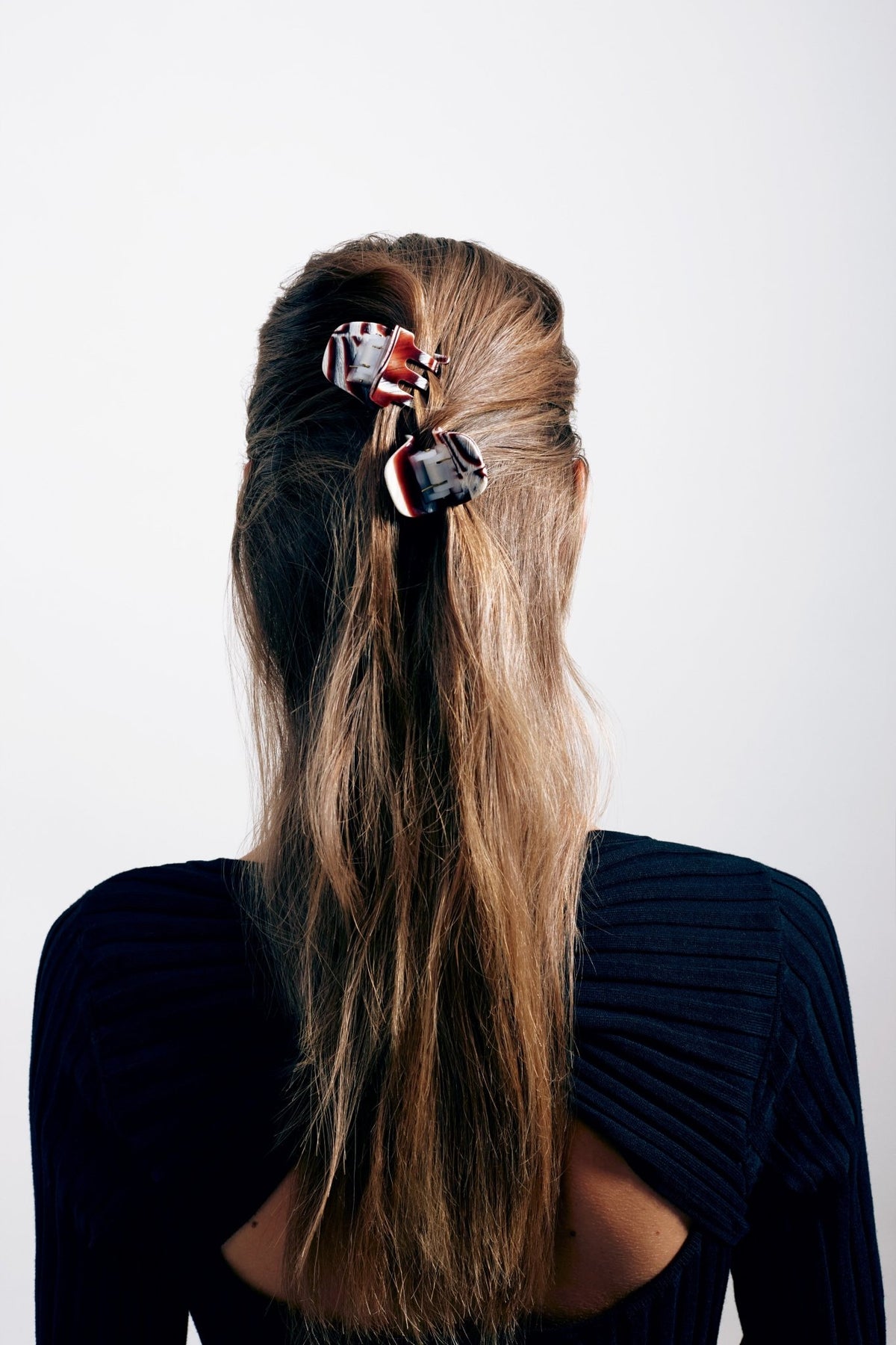 A handcrafted mini claw clip designed to securely and gently hold hair. Made from our Italian bio-acetate and recommended for all hair types and textures.