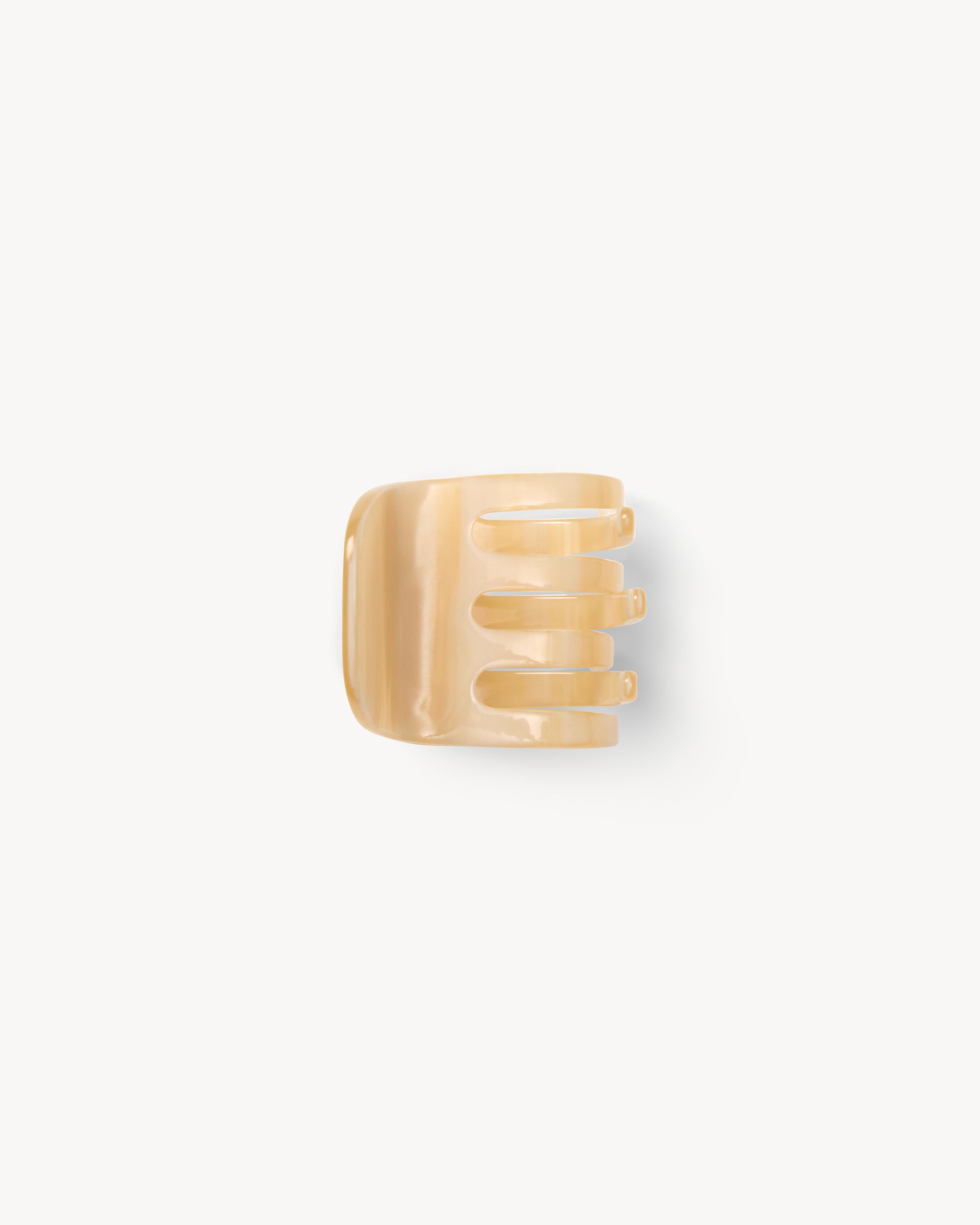 A handcrafted mini claw clip designed to securely and gently hold hair. Made from our Italian bio-acetate and recommended for all hair types and textures.