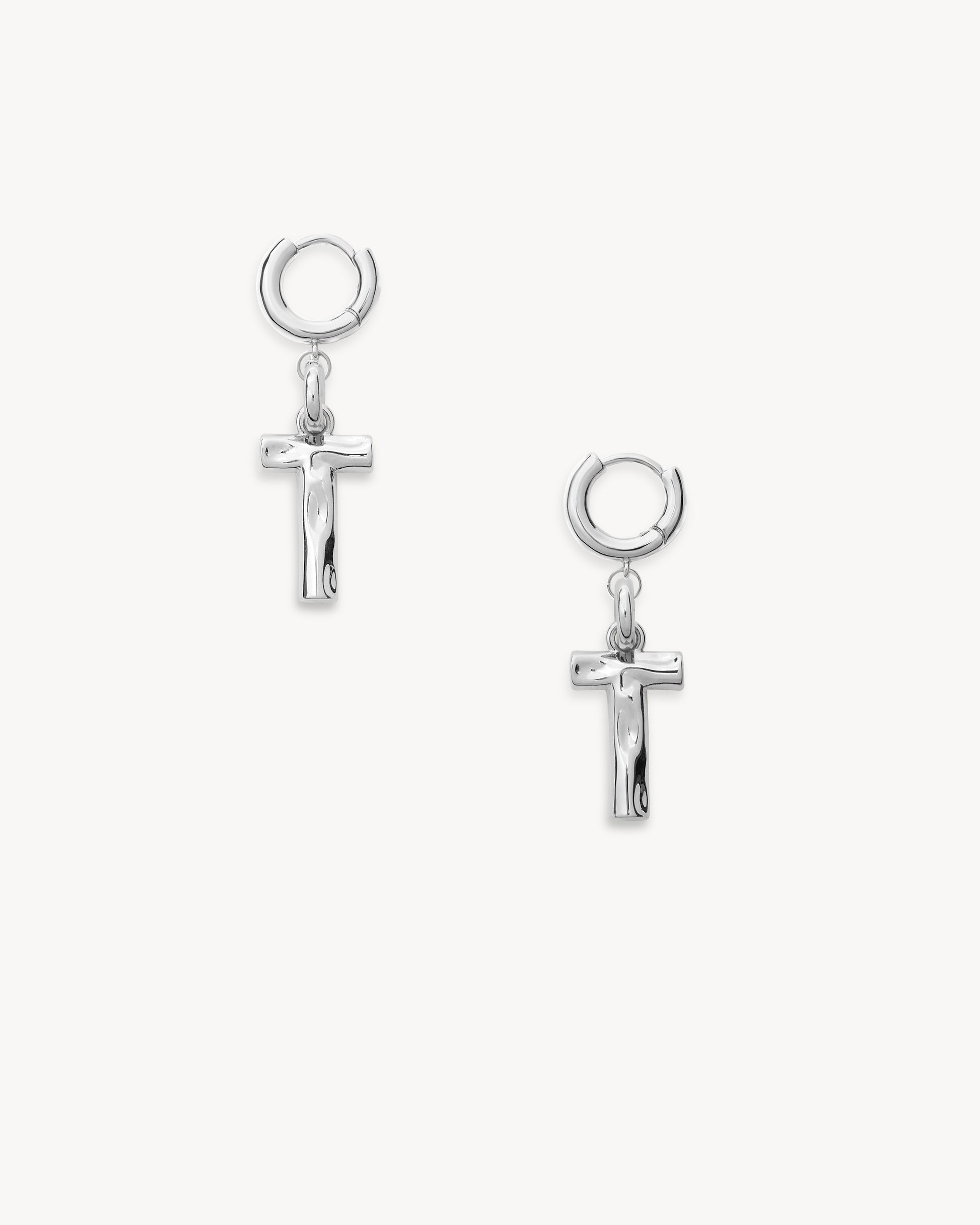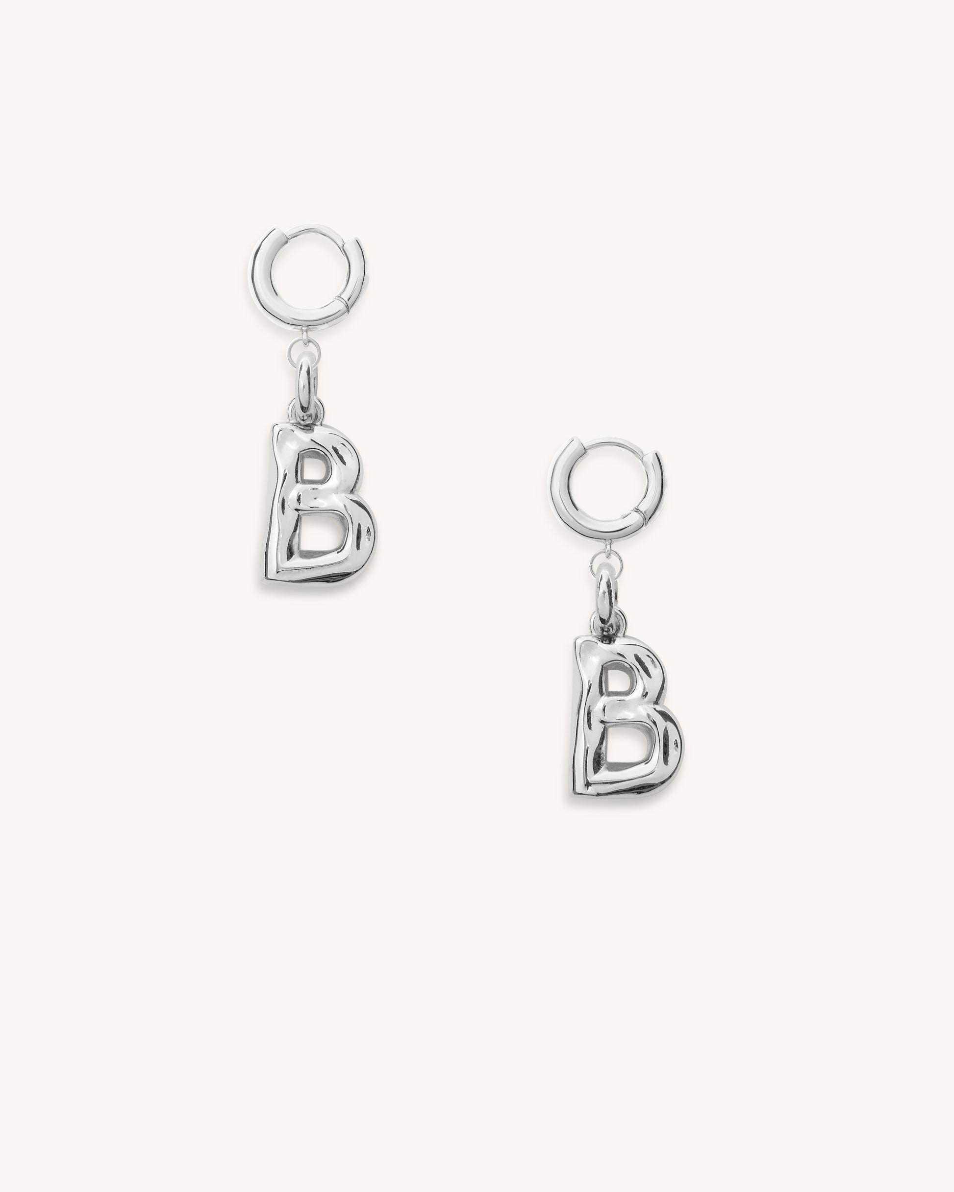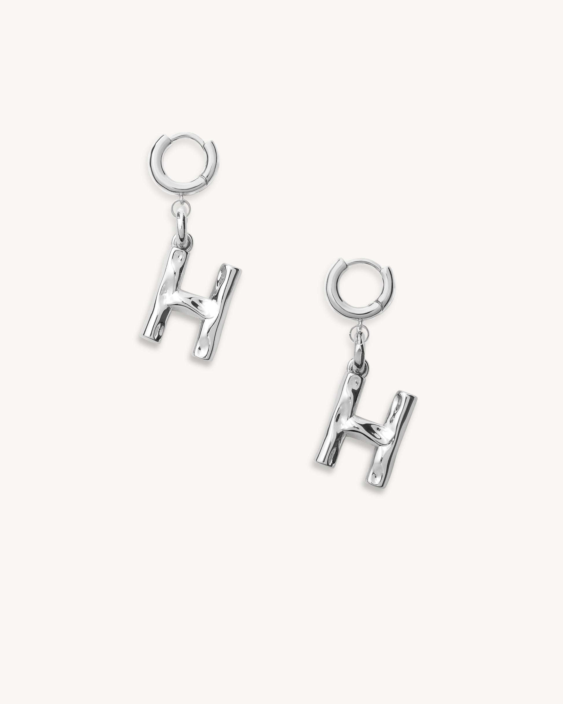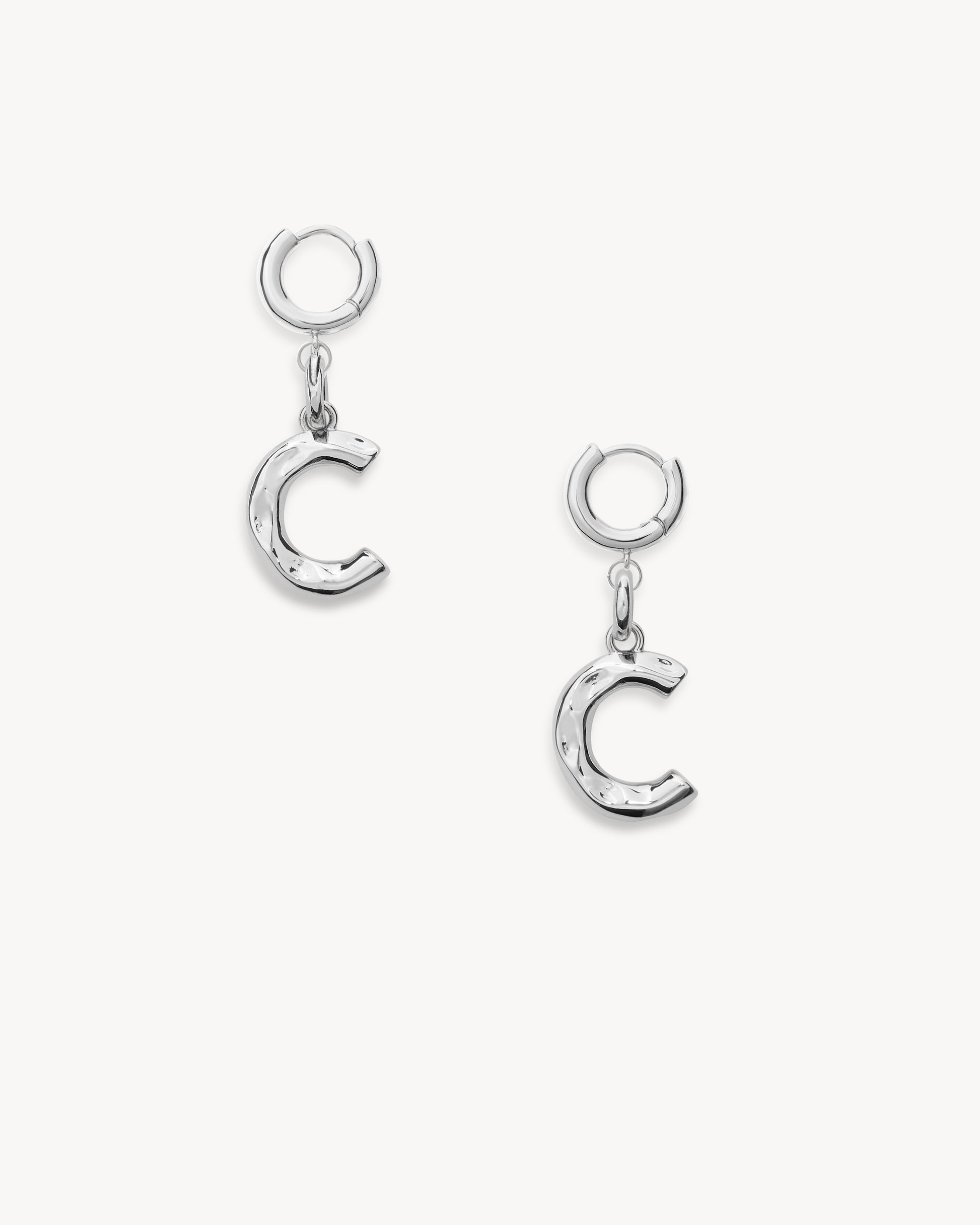 Classic huggie hoops, with a personal signature. Handcrafted from lightweight recycled brass, rhodium-plated, and finished with a secure hinge closure. *Single earrings are available by request through customer service.