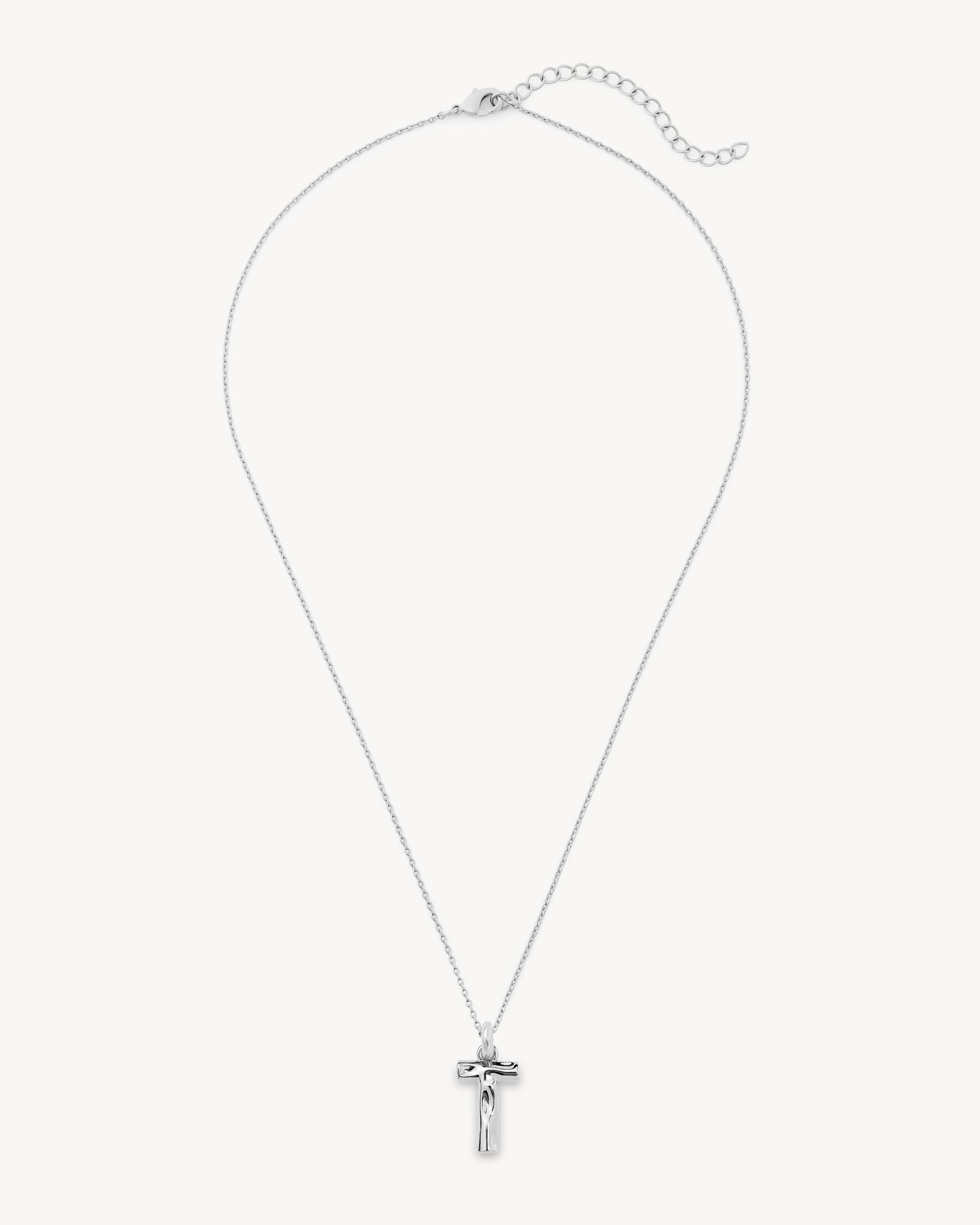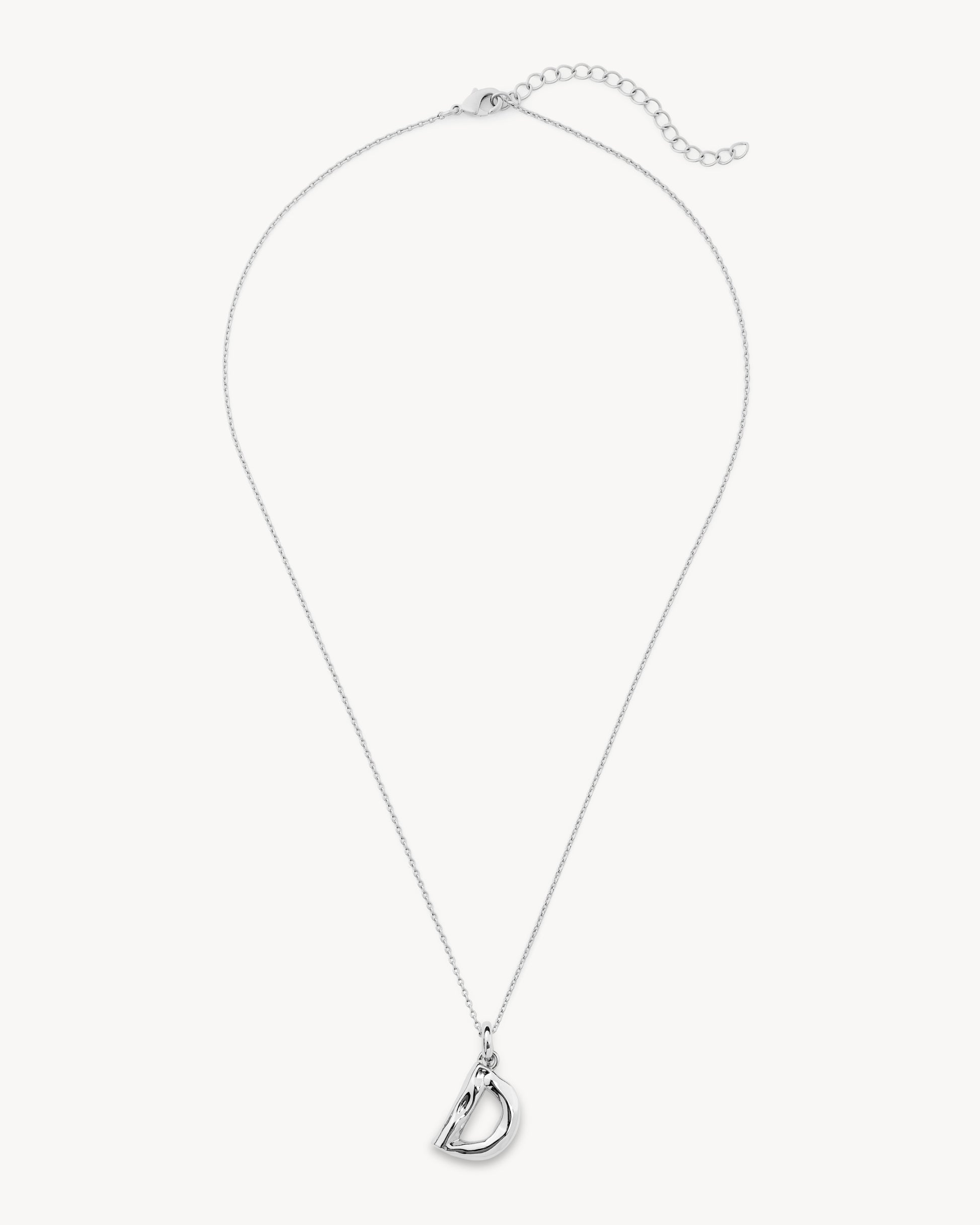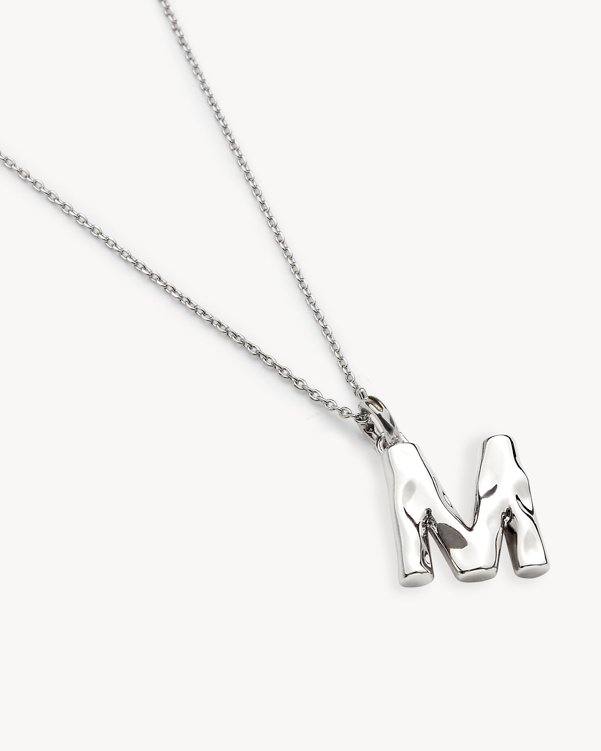 Letter charm pendant, handmade from rhodium plated hammered brass on an adjustable rhodium-plated chain or silk cord.