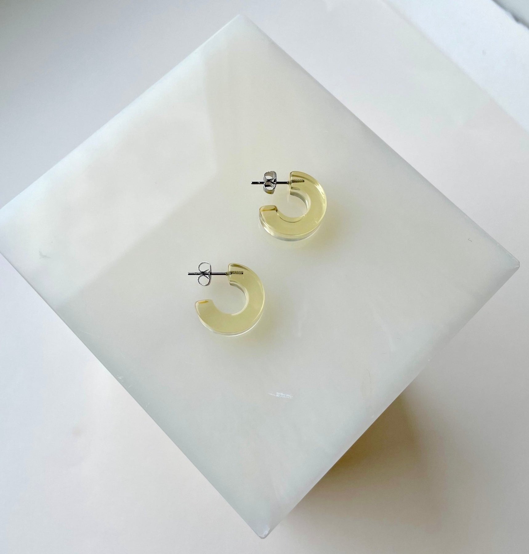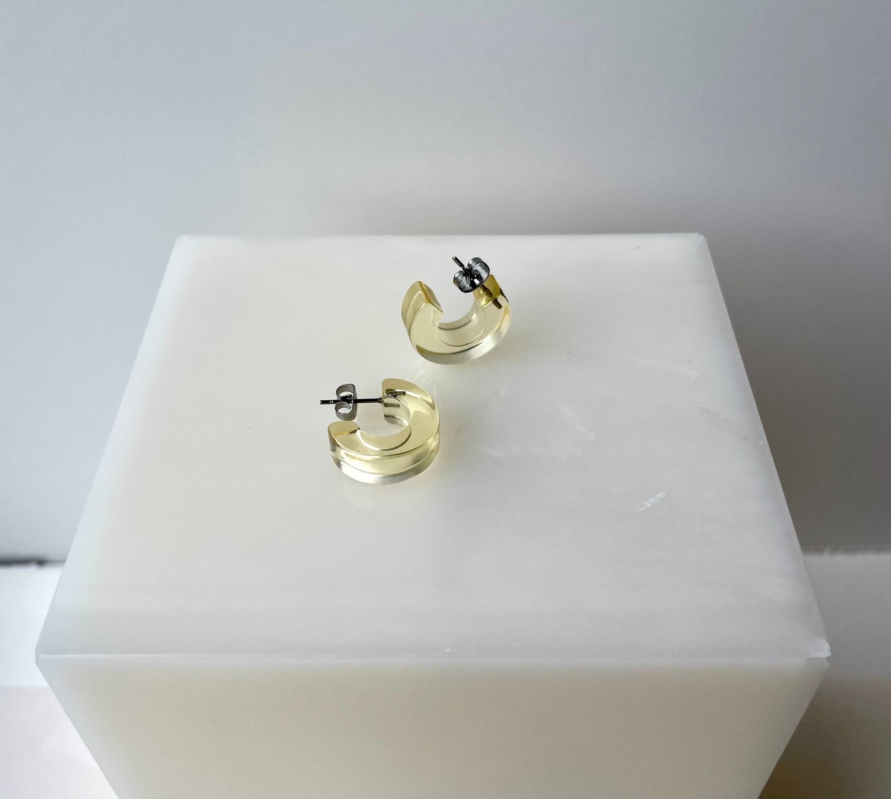 Compact, chunky hoops handmade from our Italian bio-acetate with engraved barrel backings.