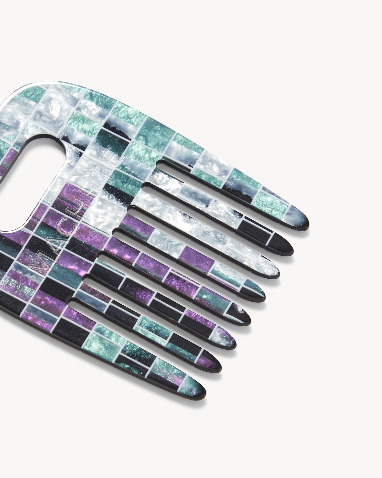 A compact wide-tooth comb handmade from fine Italian acetate. Recommended for volume styling, curly hair and afros.