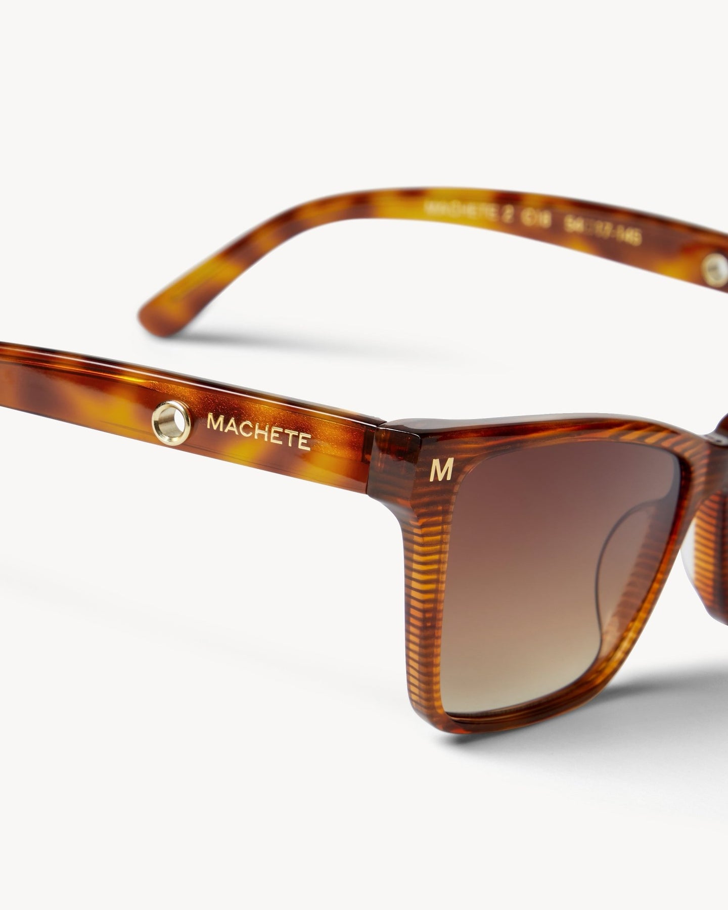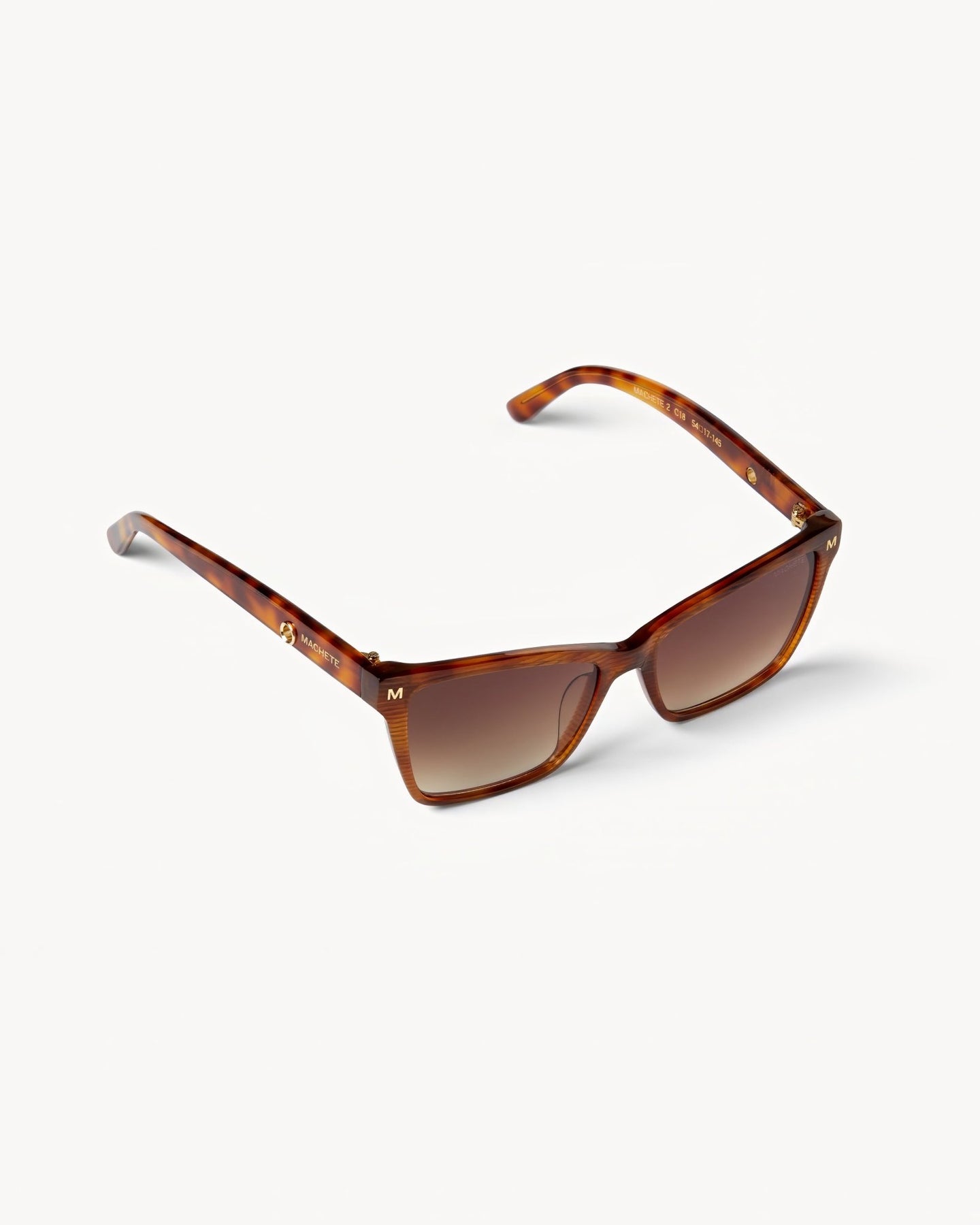 Bold, softly squared frames with a hint of cat-eye. Handcrafted from Italian bio-acetate with UV 400 protective lenses and gold hardware.